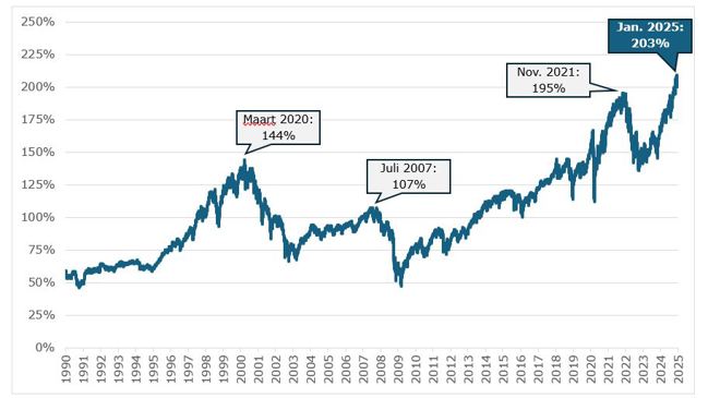 Om een antwoord te kunnen geven op deze vraag hebben wij een historische analyse uitgevoerd over de periode 1990 t/m ultimo 2024 met een focus op de Verenigde Staten.