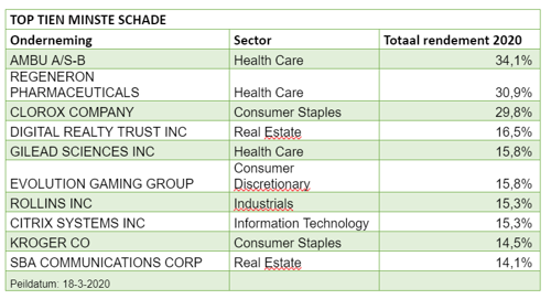 Het beste fonds is het in Kopenhagen genoteerde Ambu, dat onder meer apparatuur maakt die je op de intensive care afdeling van ziekenhuizen vindt (plus 34 procent). Denk aan beademingsapparatuur, gezichtsmaskers en reanimatiesystemen.