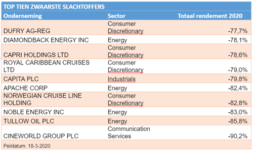 In crisistijd is het vooral belangrijk om de grootste klappen te vermijden. Die vielen bij de energiefondsen, cruisebedrijven en vliegtuigmaatschappijen.