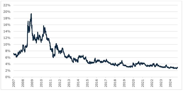 In historisch perspectief lijkt deze huidige FCF yield erg laag. Dat beleggers bereid zijn een hoge beurswaarde te betalen afgezet tegen de kasstroom, geeft aan dat zij een groot vertrouwen hebben in het succes van toekomstige overnames.