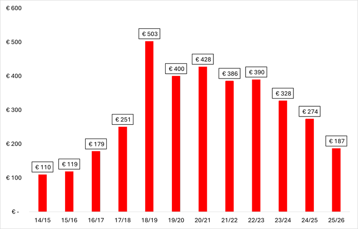 Bron: Rapportages Ajax. Bedragen in miljoenen euro’s.