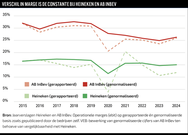 Het verschil in winstgevendheid is terug te voeren op die andere aanpak. Beide brouwers verkopen bier in fles of blik, maar de marge vertelt het verhaal: AB InBev werkt efficiënter.