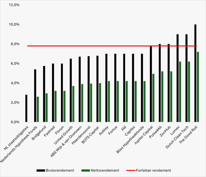 De rode lijn liegt niet: de meeste producten halen het fiscusrendement niet