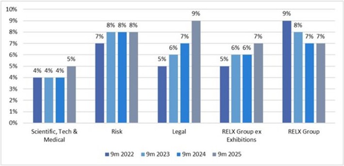 Die redenering wordt tastbaar in de juridische divisie van RELX. Ooit werd deze tak gezien als het zorgenkind van het concern, kwetsbaar voor automatisering en prijsdruk. Inmiddels is zij uitgegroeid tot de snelst groeiende divisie (zie onderstaande grafiek). Volgens Christophe Cherblanc, analist bij Bernstein, laten de AI-functies van de juridische databank LexisNexis en de digitale assistent Protégé zien hoe AI het werk van juristen niet vervangt, maar verdiept.