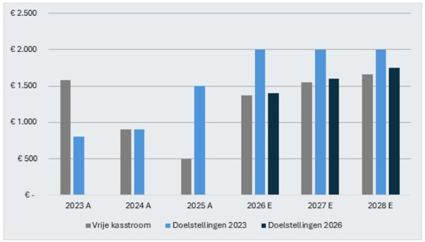 De belofte uit 2023 van meer dan 2 miljard euro vrije kasstroom per jaar is losgelaten en ingeruild voor 4,5 tot 5 miljard euro cumulatief tot 2028, een niveau dat beter aansluit bij de huidige analistentaxaties.