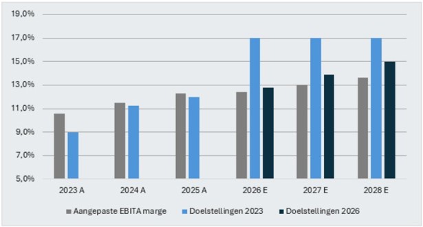 Bron: Bloomberg en publicaties Philips. EBITA marge over de periode 2023-2025 op basis van gerealiseerde resultaten, en over de periode 2026-2028 op basis van analistentaxaties vóór de CMD.