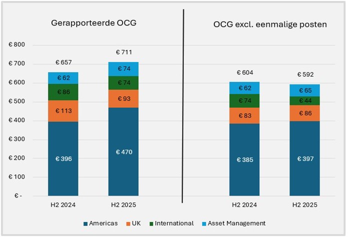 Dat groeiverhaal lijkt op papier tractie te krijgen. De kapitaalgeneratie (operating capital generation, OCG) kwam in de tweede helft van 2025 uit op 711 miljoen euro, een stijging van acht procent op jaarbasis. Vooral de Verenigde Staten trokken de kar: de OCG-bijdrage steeg met bijna twintig procent naar 470 miljoen euro.