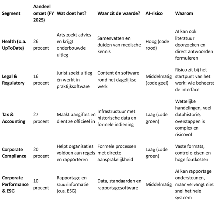 De markt gedraagt zich momenteel alsof Wolters Kluwer de slag met AI al heeft verloren. Een nederlaag is ingeprijsd. De cijfers tonen vooral kwetsbaarheid in één segment, maar niet voor het bedrijf in zijn geheel.