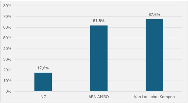 ING en ABN AMRO rapporteren in hun jaarverslagen echter geen afzonderlijke procentpuntimpact van de Nederlandse mortgage floor. Dat maakt het effect voor beleggers minder transparant.